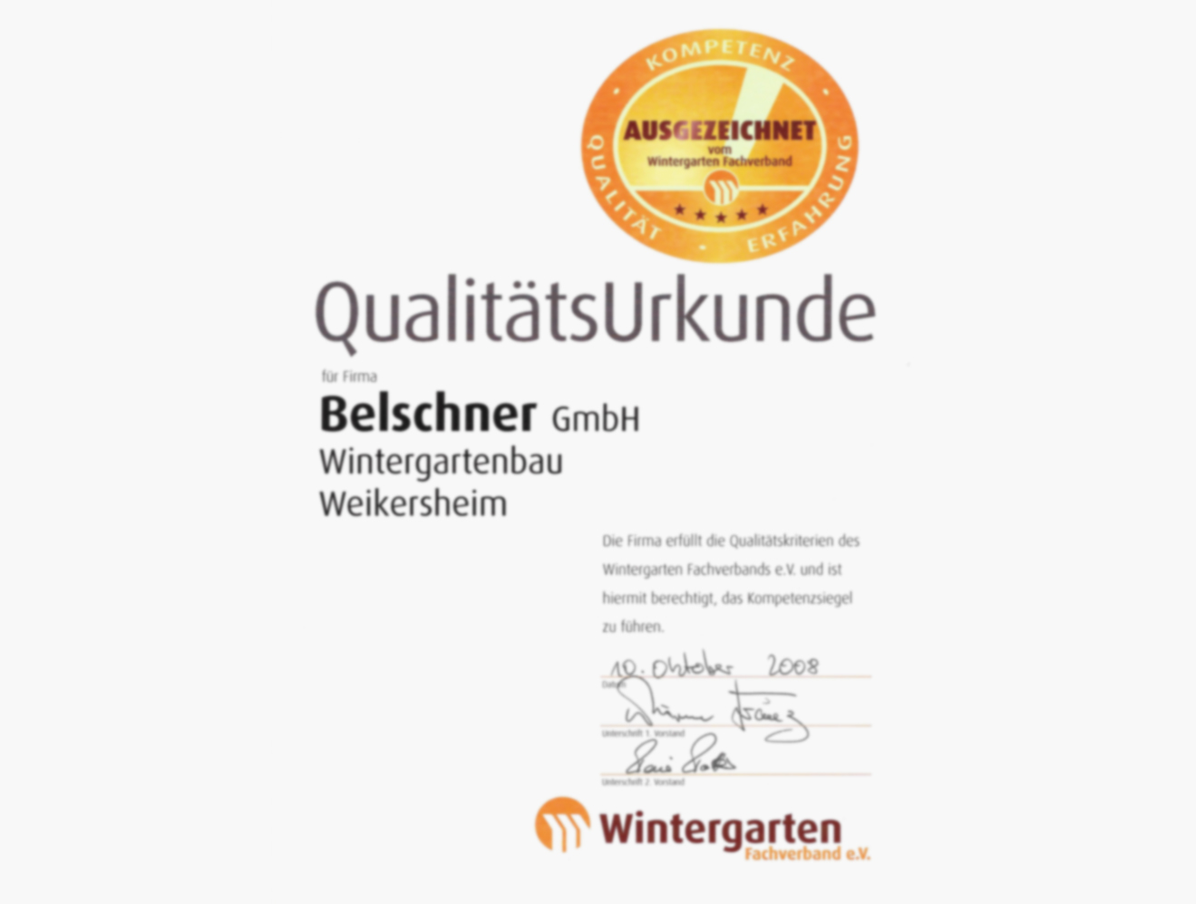Aufstieg zu den hochrangigen Wintergartenherstellern und dafür ausgezeichnet, Mitwirkung an der Ausarbeitung von Branchenorm